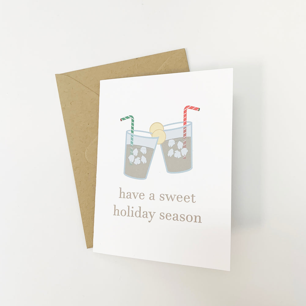 Happy holidays y'all! This holiday card is perfect for a Southern holiday season. Clink those glasses of sweet iced tea together and have a sweet holiday. Cheers!