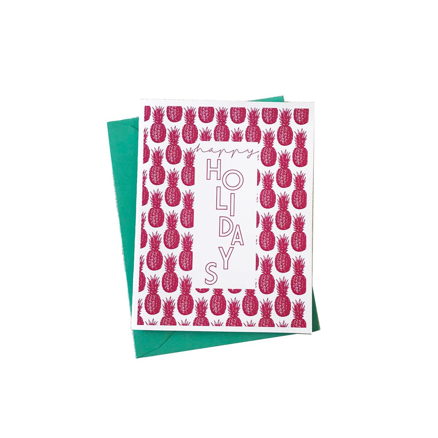 These cheery holiday cards are perfect for any warm-weather holiday location (which is much of the South, of course!), or just for anyone who likes pineapples, pink & green! These are limited edition with "jade" green envelopes, so order soon before they run out.