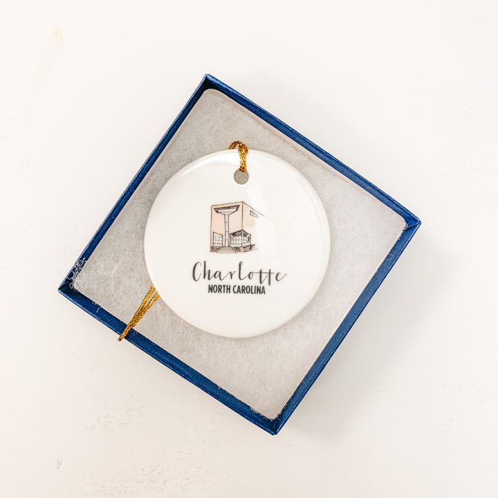 This Charlotte Christmas Ornament can be personalized just for you or ordered as shown. The iconic Mint Museum on a pretty white ceramic ornament makes a perfect holiday keepsake or gift.