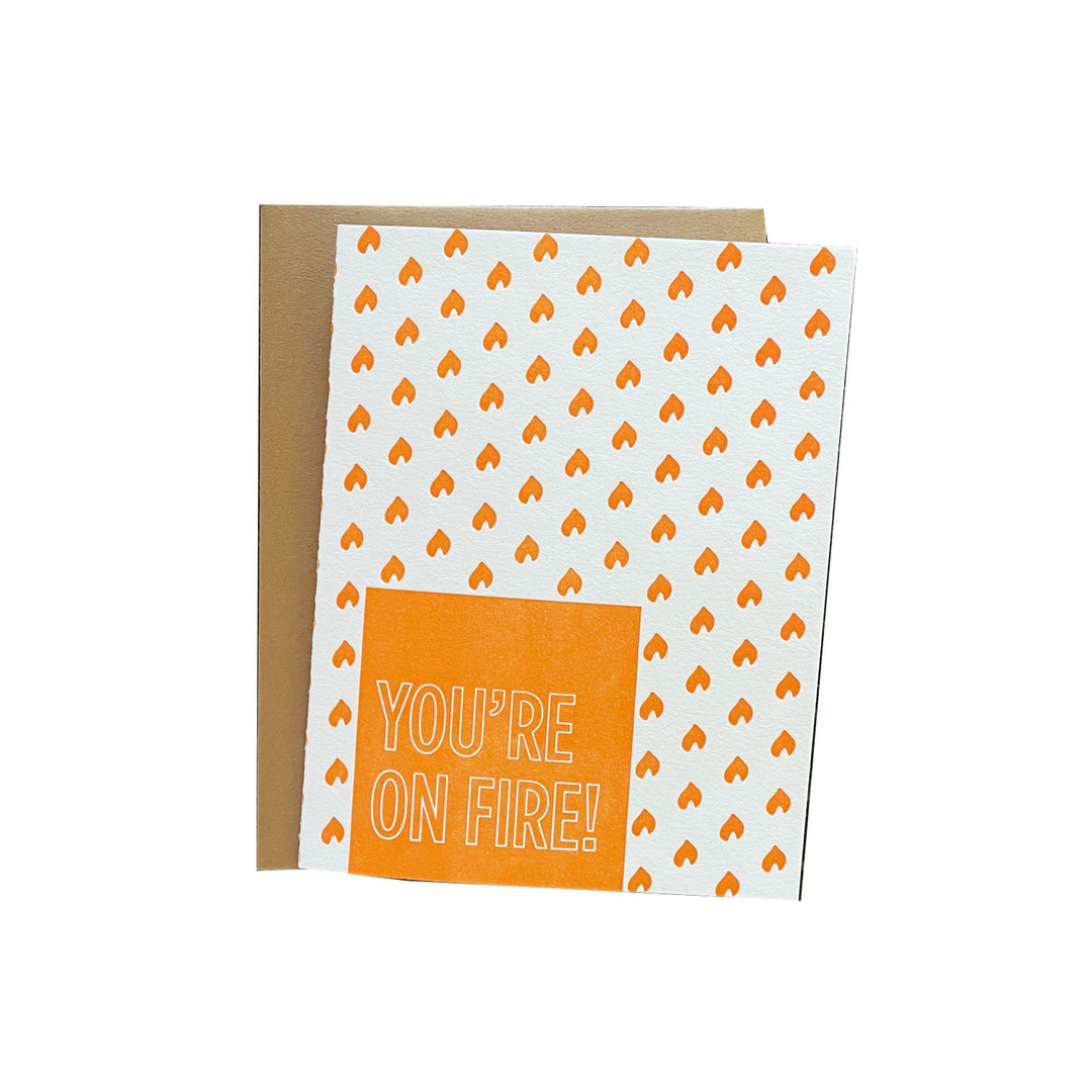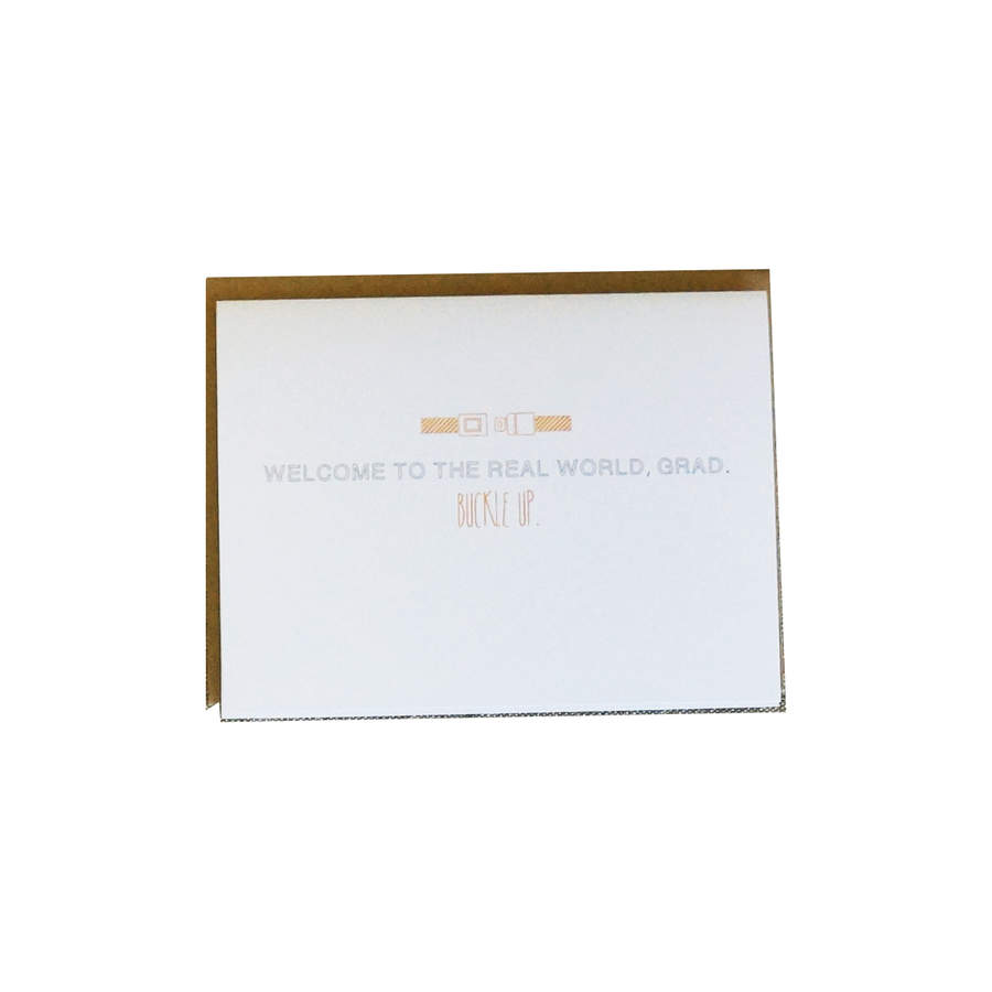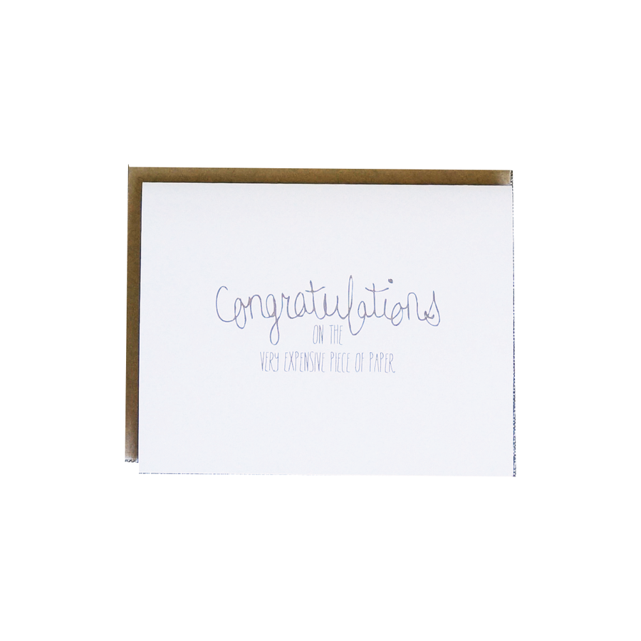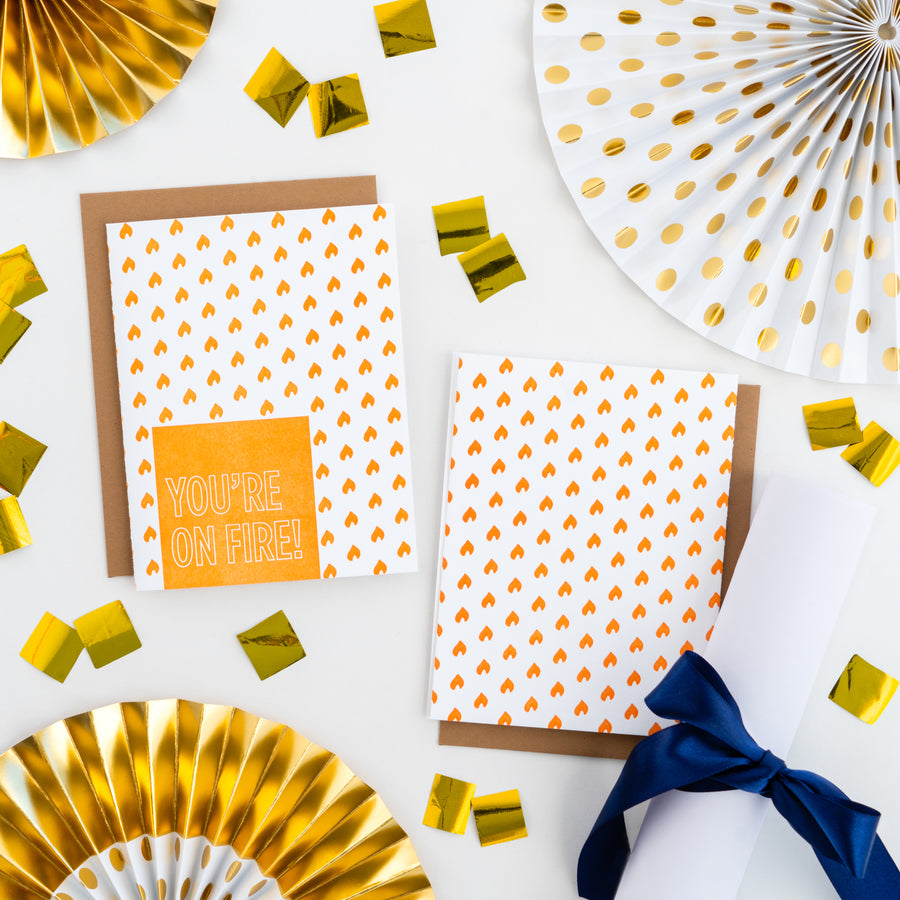 This letterpress card is the perfect one to give to a friend or family member for a graduation card, new job card, or just to say "you're killing it!! The pressed design flows from front to back of the card with a blank interior to write the perfect sentiment.