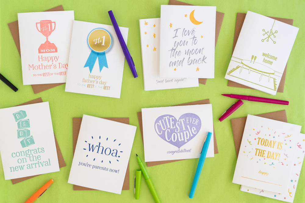 Buy 5 of any of our letterpress and foil cards for $30 (discount is automatically applied at checkout).