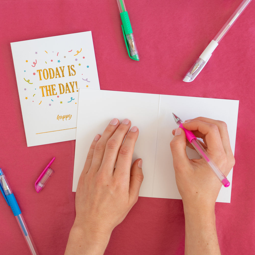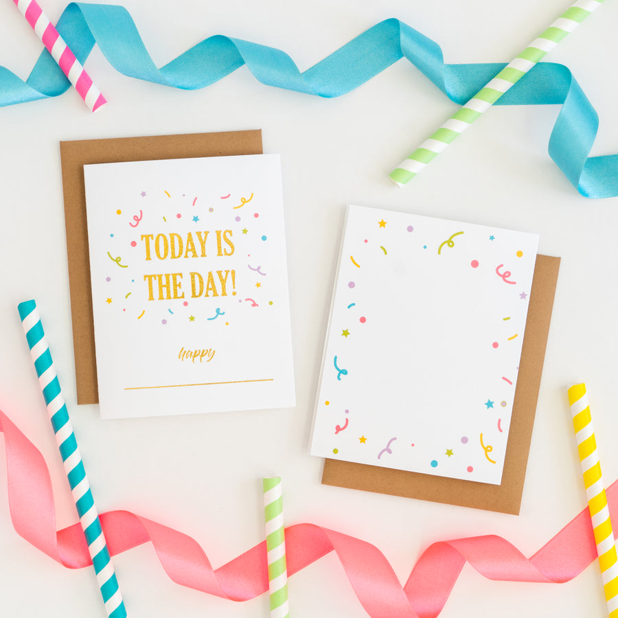 Today is the Day! This happy, cheerful glitter foil card works for any occasion you can think of. It's the perfect card to keep around for that random card need - new job, retirement, moving day, engagement, you name it.