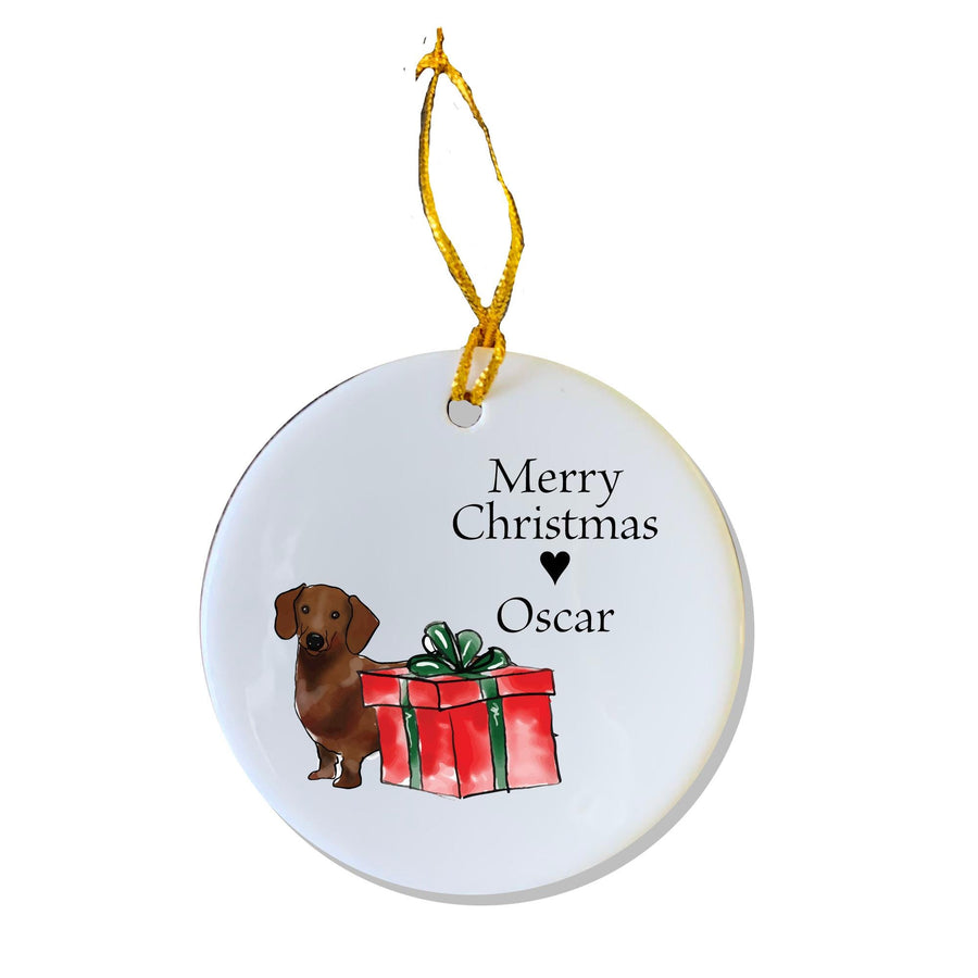Dachshund Christmas Ornament, the perfect gift for a Dachshund lover! Personalize it with your puppy's name or any message you'd like - Merry Christmas, Happy Holidays, etc. are all options, of course!