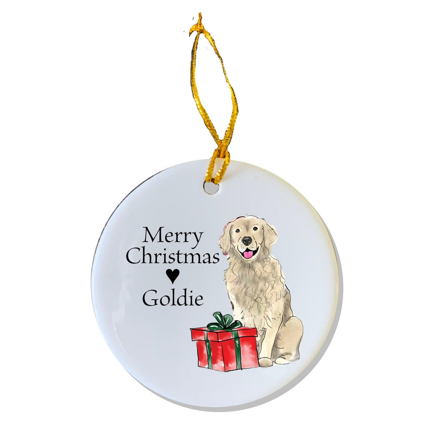 Golden Retriever Christmas Ornament, the perfect gift for a Golden Retriever lover! Personalize it with your puppy's name or any message you'd like - Merry Christmas, Happy Holidays, etc. are all options, of course!