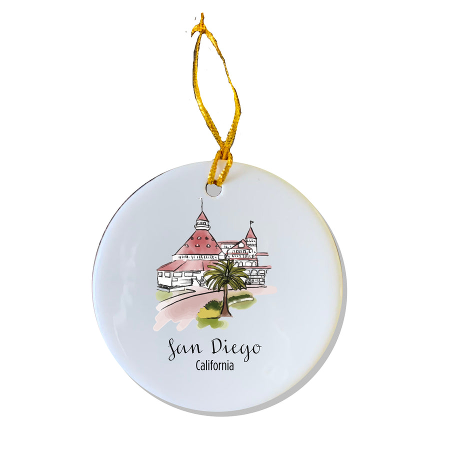 This San Diego Christmas Ornament can be personalized just for you or ordered as shown. Featuring a Hotel del Coronado scene on a pretty white ceramic ornament, this sweet design makes a perfect holiday keepsake or gift.
