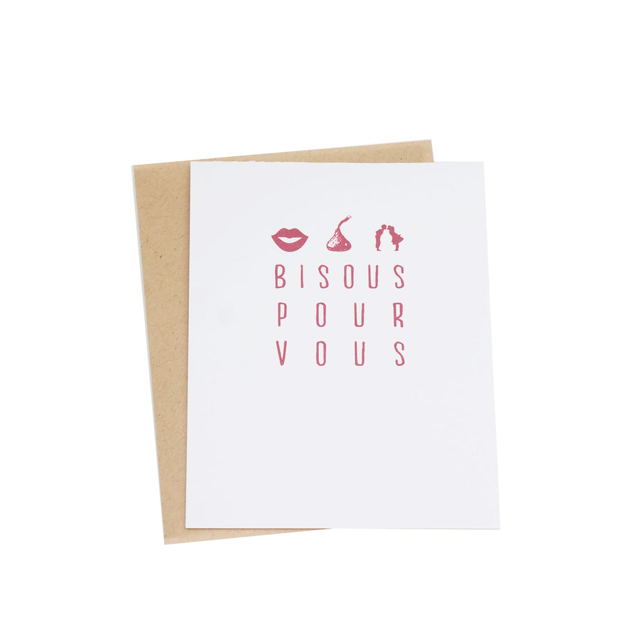 Bisous French Kisses Valentine's Day Card - shop greeting cards, handmade stationery, & wedding invitations by dodeline design - 1
