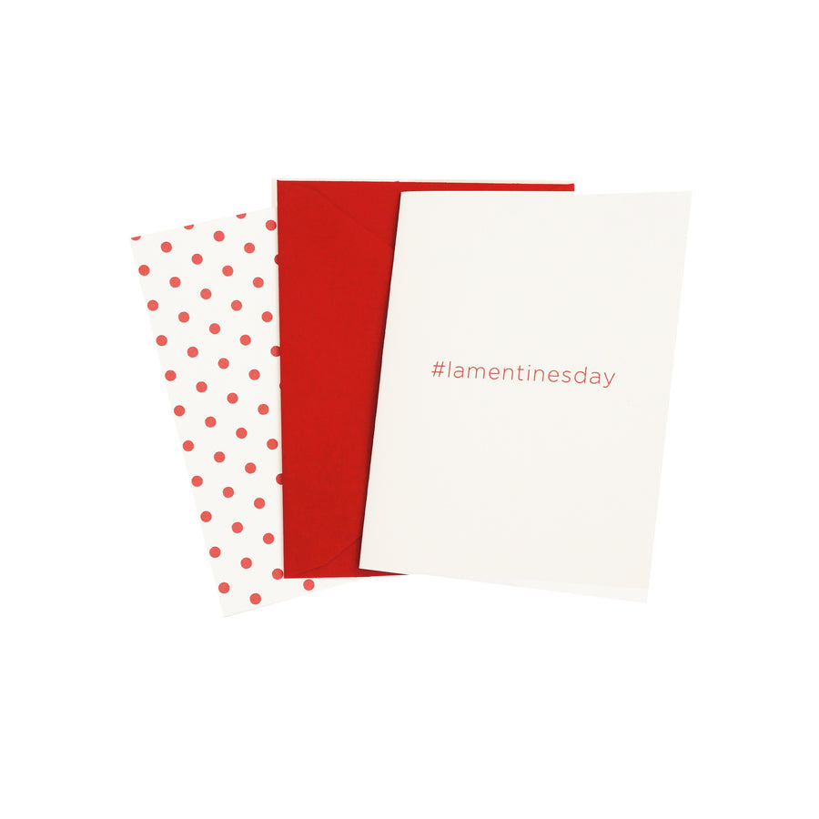 A combination of clean modern type with hand calligraphy, the message on the front reads "Happy February 14" and the inside of the card is blank. On the back, adorable red polka dots add a fun touch and the card is paired with a pretty red envelope.