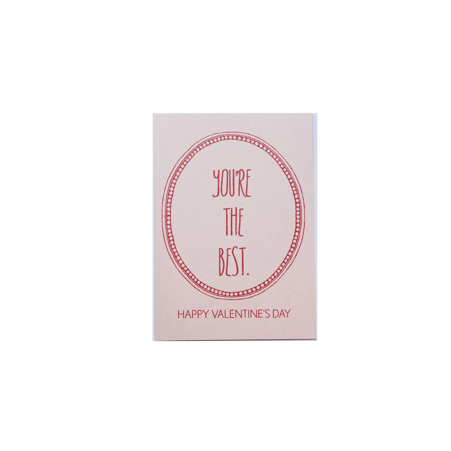 Adorable design printed on metallic pale pink cardstock. Perfect for your Valentine!