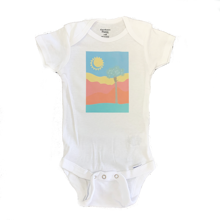 Precious "palmetto moon" inspired design for this Lowcountry Baby onesie.  Adorable shower gift!  Available in NB, 3-6M, 6-9M, 12M, and 18M.